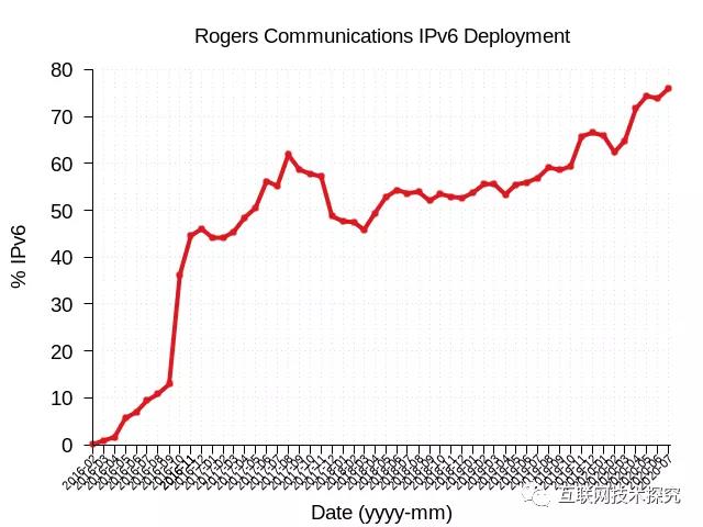 圖11 Rogers Communication IPv6部(bu)署曲線(xiàn)圖 |